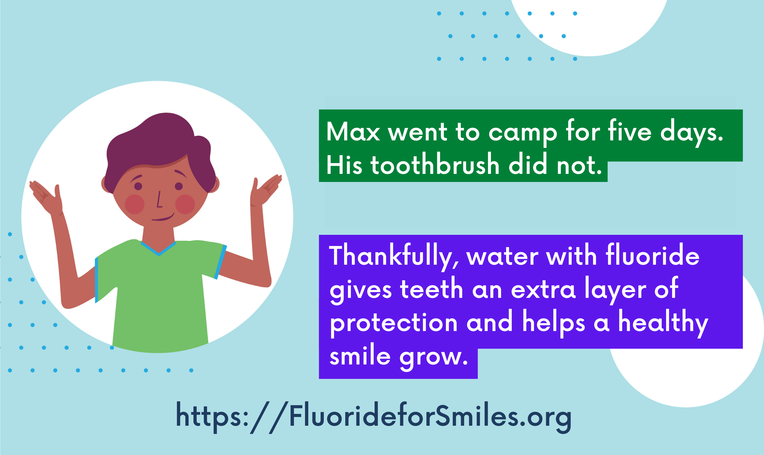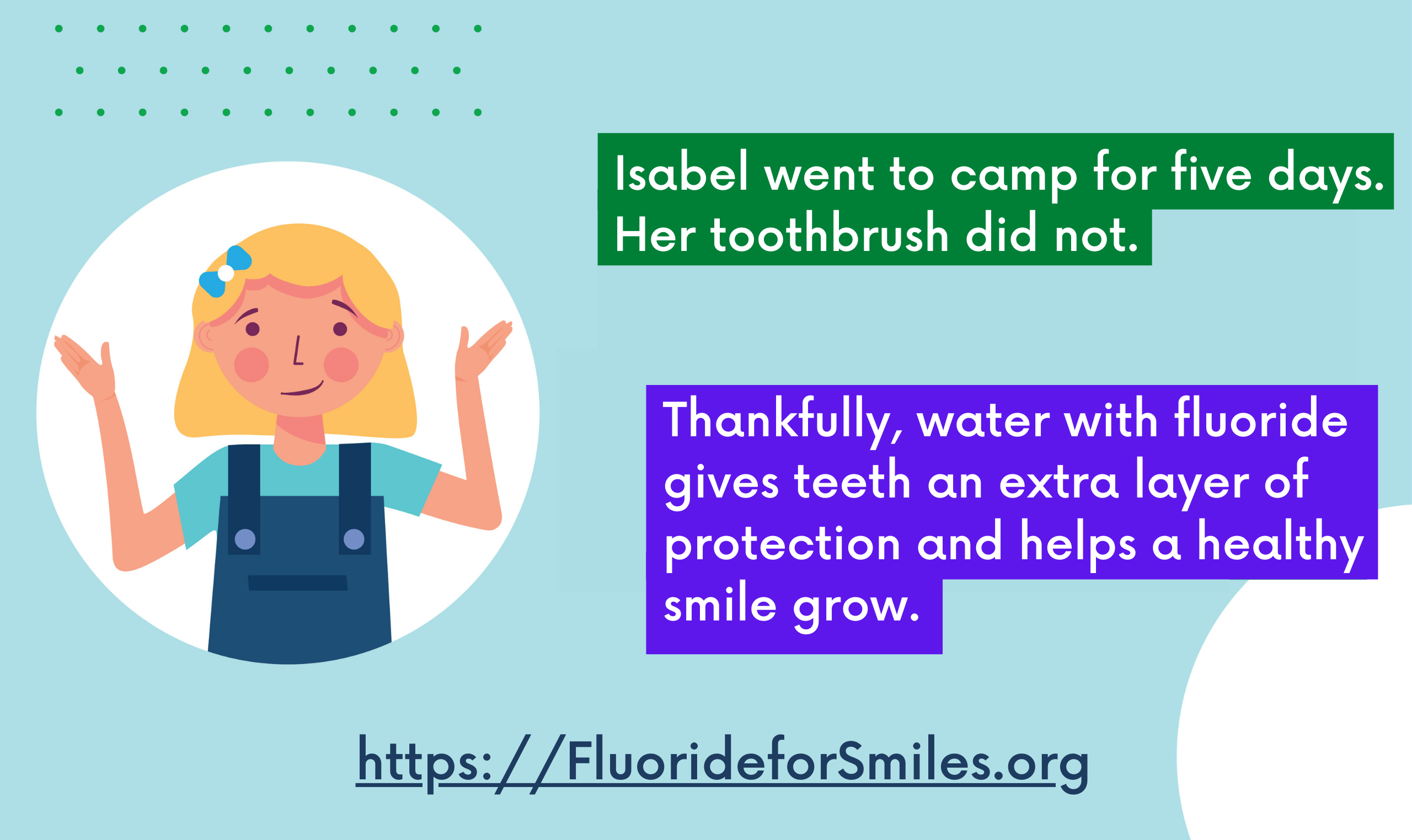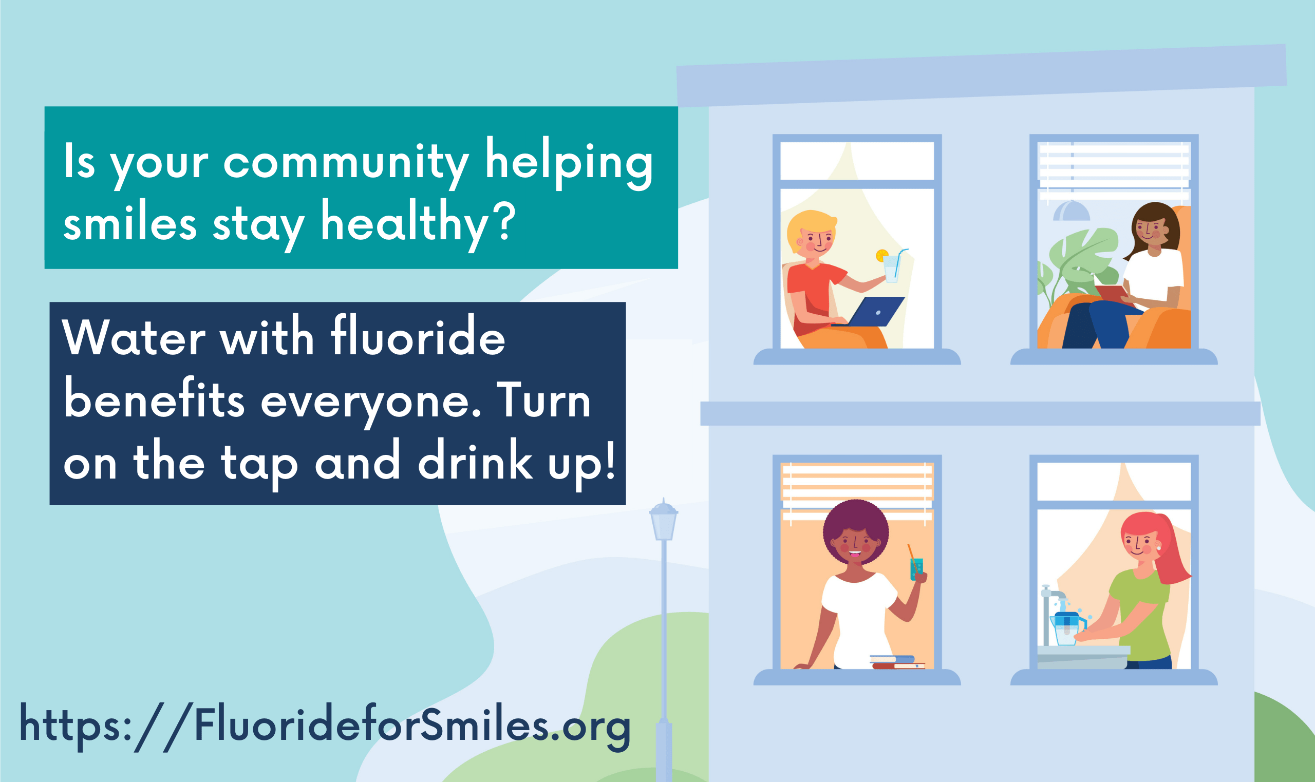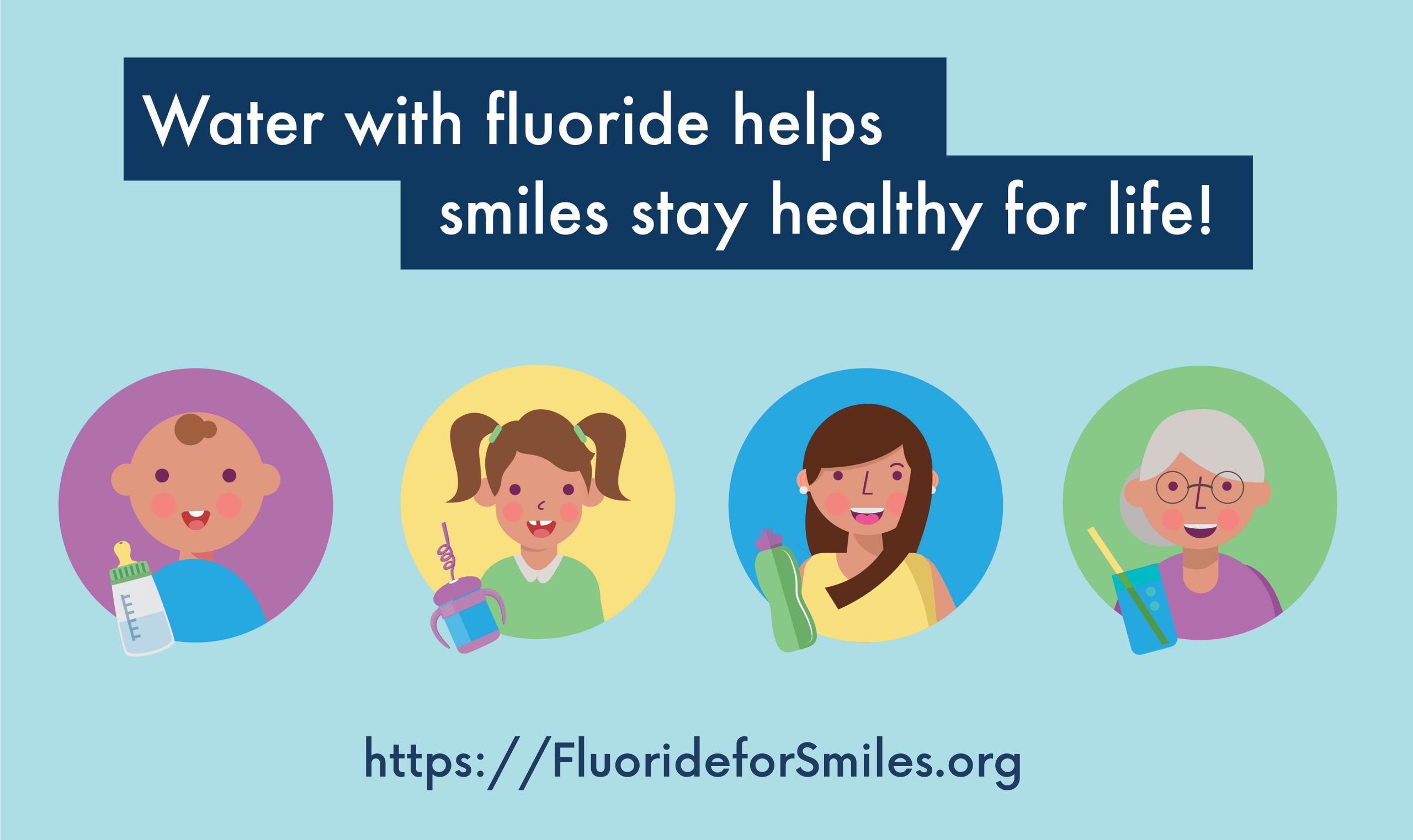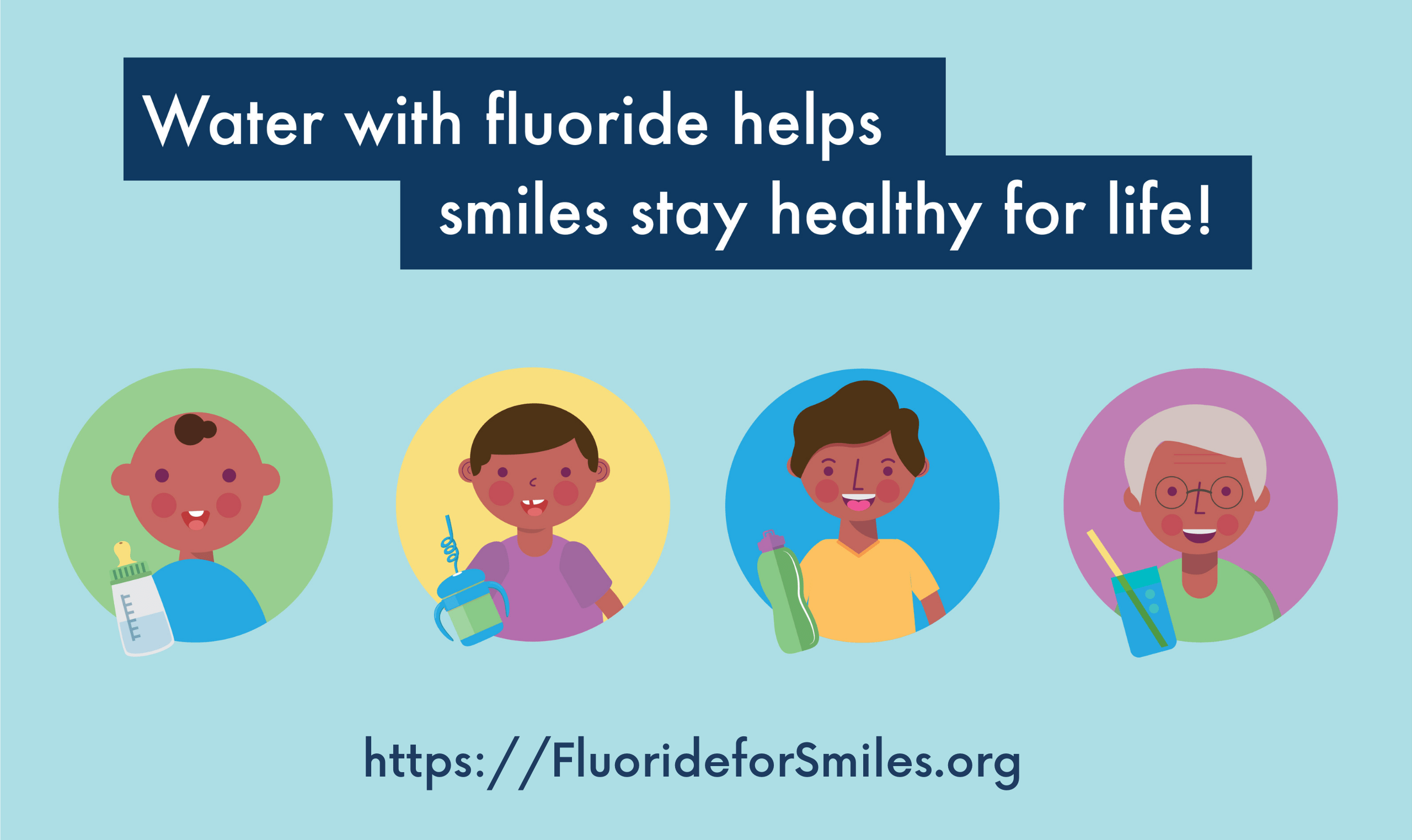 Healthy smiles are an important part of overall health. Water with fluoride benefits people of all ages and incomes, especially those who cannot see a dentist regularly. To learn more and help spread the word, visit www.fluorideforsmiles.org.