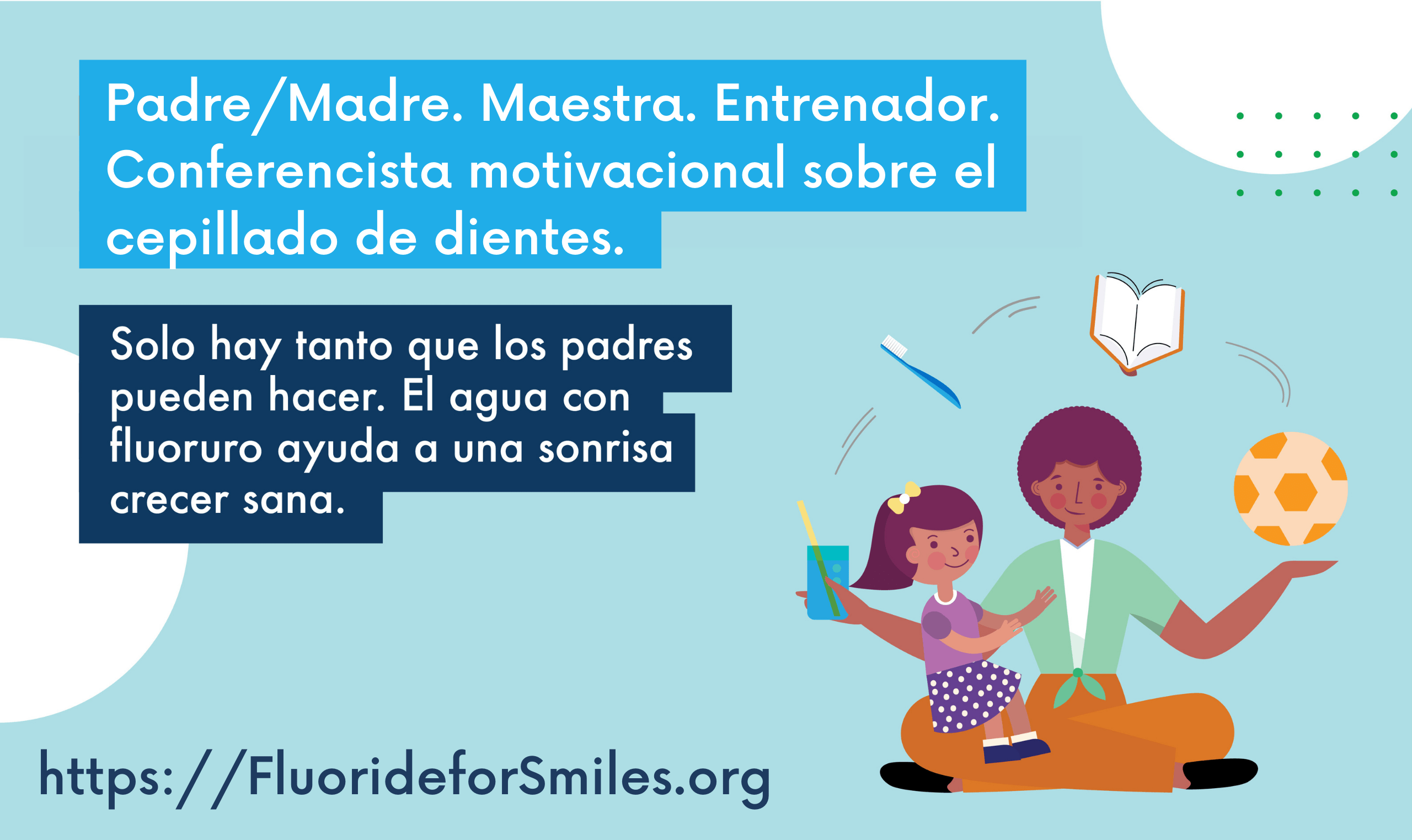 La vida con niños es impredecible. Cuando su agua tiene fluoruro, puede ayudar a proteger los dientes de su familia sin incluir otras cosas que hacer en su ya ocupada rutina. Para obtener más información y ayudar a correr la voz, visite www.fluorideforsmiles.org.