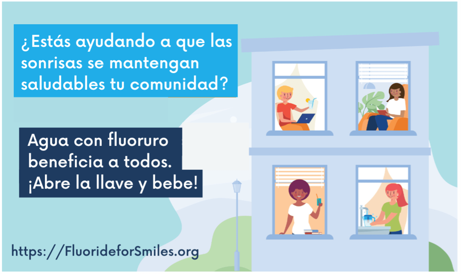 Las sonrisas saludables son una parte importante de la salud en general. El agua con fluoruro beneficia a personas de todas las edades e ingresos, especialmente a aquellas que no pueden ir al dentista con regularidad. Para obtener más información y compartir esta información con otros, visite www.fluorideforsmiles.org.